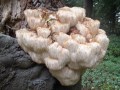 De zwam is ongesteeld. De roomwitte stekels worden later okerkleurig.