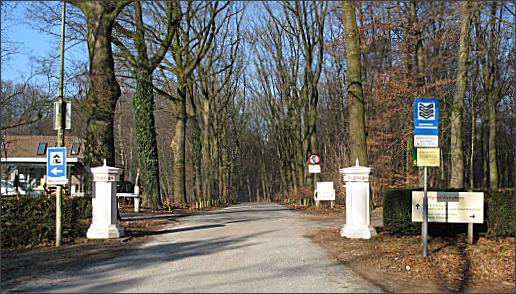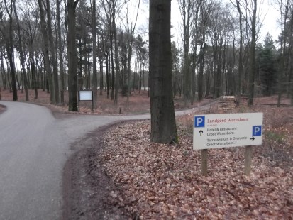Bij de ingang van Warnsborn, gaat U tussen de 2 witte pilaren door (zie foto hieronder), negeer het inrij verbod.