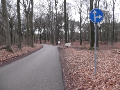 Dan na zo'n 100 meter rechtsaf naar beneden een verharde zandweg op......